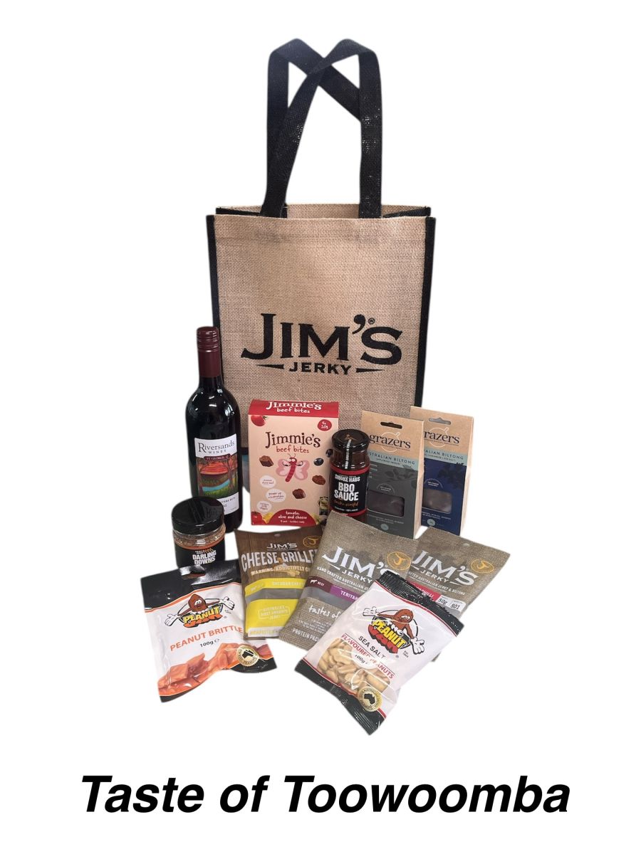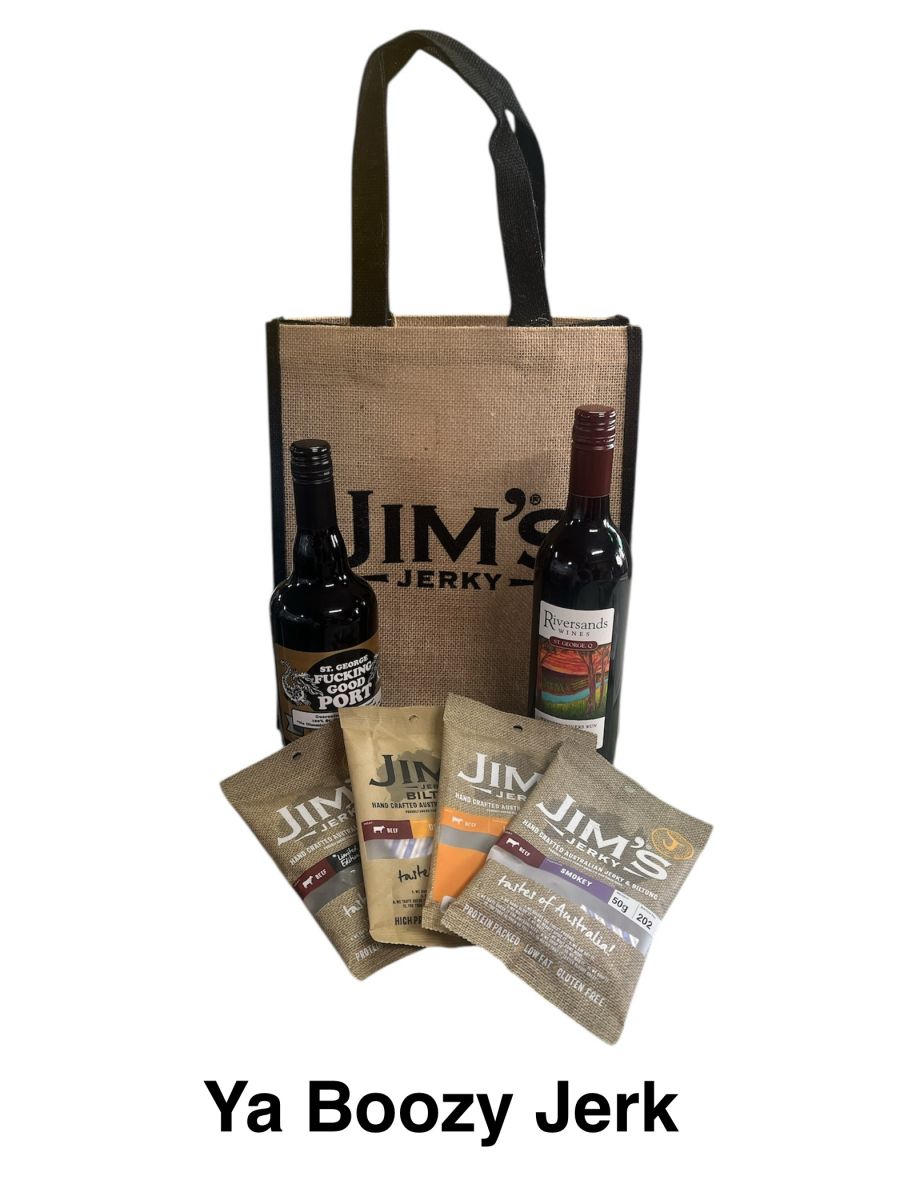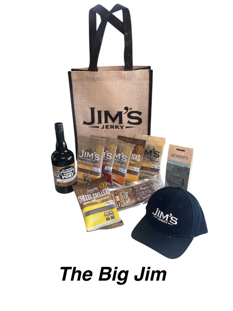This is the big guy, the head honcho, the gift pack form of Jim himself. All of our favourites from the Jim’s Jerky range alongside a bottle of Riversands “F@cking Good Port”. Because who doesn’t deserve that? F@cking no one! We’ve even bundled it up in our handy Jim’s Jerky jute tote bag and thrown in a trucker cap.