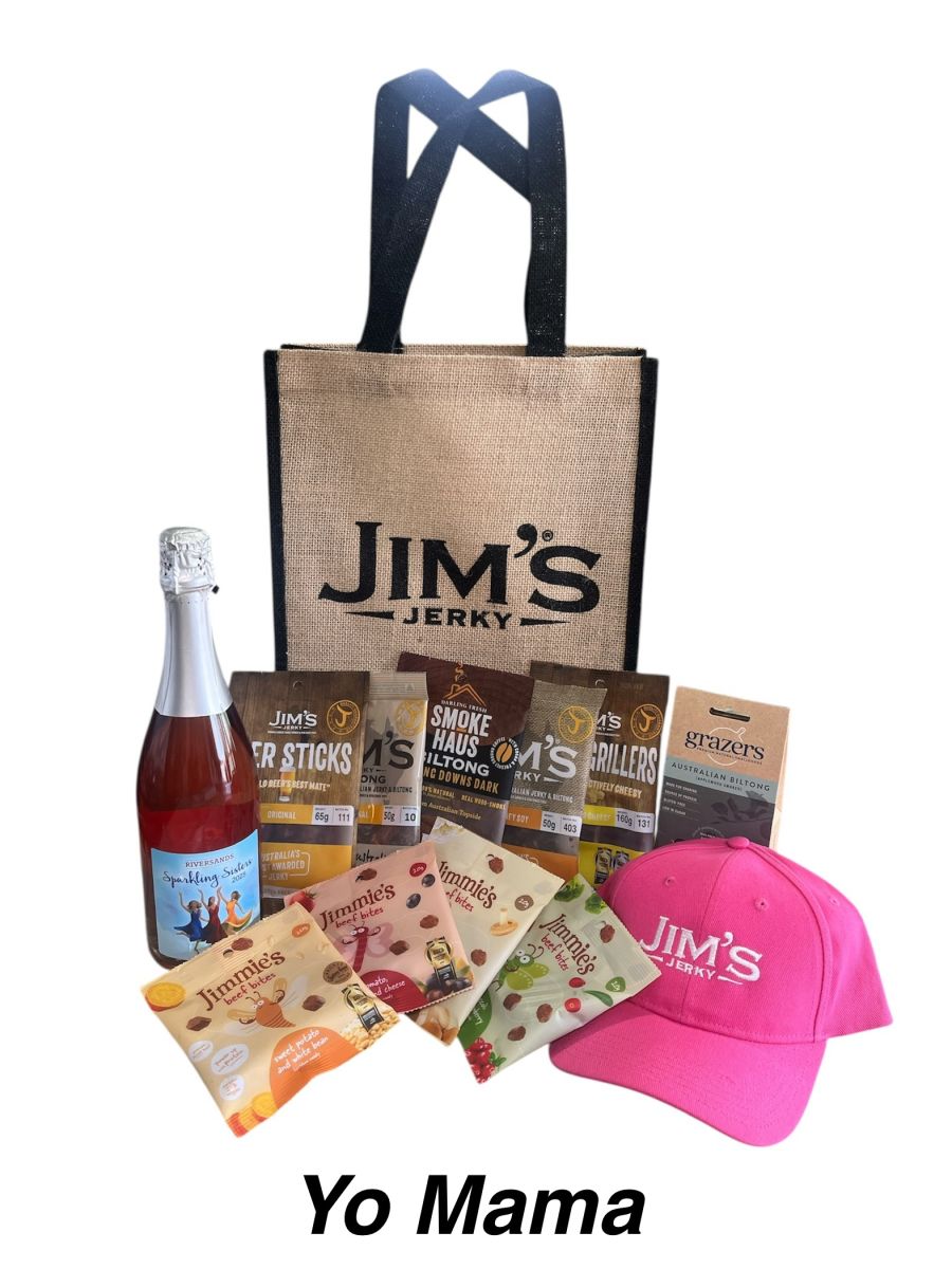 Know someone who likes to keep it light and breezy? Then this is easy peasy. A selection of our lighter style Jim’s Jerky products for those who like to be a little more health conscious. Gluten free, low fat, low sugar and high protein? Yes please. Makes it way easier to indulge in a glass (or two, we don’t judge) of Riversands Sparkling Sisters. We’ve even popped in a Jim’s trucker hat to “cap” it all off. All ready to go in our Jim’s Jerky Jute Tote Bag.